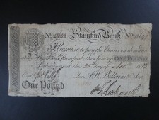 EARLY DATE 1813 STAMFORD BANK WHITE PROVINCIAL £1 BANKNOTE VG