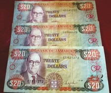3 total Bank of Jamaica $20 Banknotes 1985-1987 Circulated Uncertified Ungraded