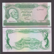 LIBYA P.45b 10 DINARS PFX A/159 SIG 5 SOFT CENTER FOLD VERY FINE-EXTREMELY FINE