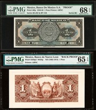 Mexico Proof Pair 1 Peso P46fp PMG68 EPQ Nuevo Leon Back Proof PMG65 EPQ Top Pop