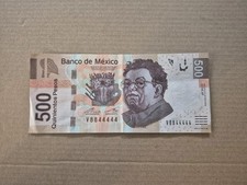 2014 500 Peso Mexico Bill With Unique Serial # V8844444 Frida And Diego Rare