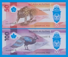 Philippines 2 notes, 50 + 100 Piso P 249 + 250 New 2024 /2025 UNC Polymer notes