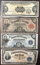 PHILIPPINES 1929 2 Pesos, 1944 1 & 2 Pesos Victory, 1949 5 Pesos 4 Banknotes