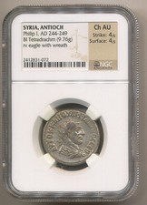 AD 244-249 SYRIA ANTIOCH PHILIP 1 SILVER TETRADRACHM NGC CHOICE AU