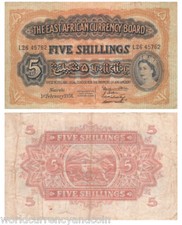 EAST AFRICA 5 SHILLINGS P33 1956 TIGER QUEEN RARE GB UK ZANZIBAR MONEY BANK NOTE