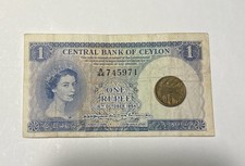 CEYLON Billet 1 Rupee 16/10/1954 P49 QEII QUEEN ELIZABETH QUEEN VF Currency GEM